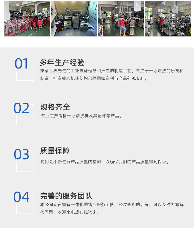 干冰清洗降低了清洗的人工成本、生產(chǎn)設(shè)備的停機(jī)時(shí)間和廢物處理成本,從而減少了清洗的諸多負(fù)面影響;并且不需要干燥和冷卻時(shí)間,降低了很多不必要的成本。
