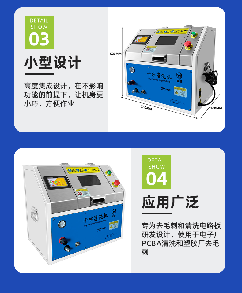 干冰清洗降低了清洗的人工成本、生產(chǎn)設(shè)備的停機時間和廢物處理成本,從而減少了清洗的諸多負(fù)面影響;并且不需要干燥和冷卻時間,降低了很多不必要的成本。