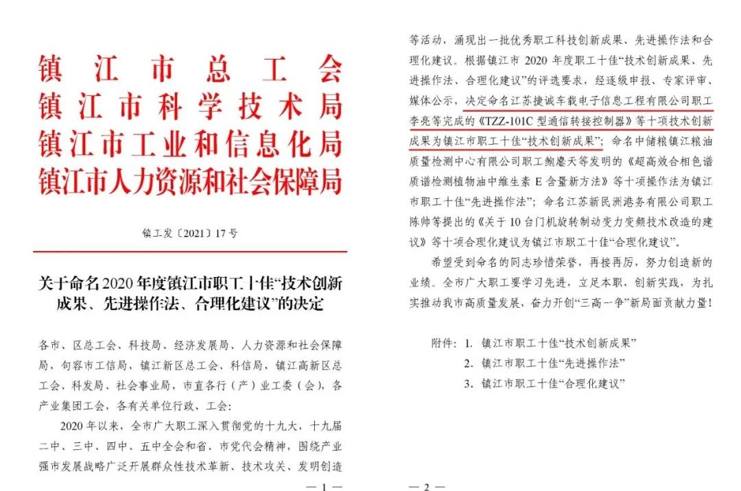 近日,該技術(shù)創(chuàng)新項目被鎮(zhèn)江市總工會、科學(xué)技術(shù)局、工業(yè)和信息化局與人力資源和社會保障局于授予鎮(zhèn)江市職工十佳“技術(shù)創(chuàng)新成果”獎。研發(fā)團隊表示:后續(xù)將珍惜榮譽、再接再厲,大力弘揚航天精神,同時要充分發(fā)揮引領(lǐng)和傳、幫、帶、教等作用,將個人的先進經(jīng)驗轉(zhuǎn)化為群體的技能優(yōu)勢,把在科研開發(fā)中遇到和解決的技術(shù)難題進行總結(jié)、研究,更好地發(fā)揮示范帶頭作用,為企業(yè)高發(fā)展作出更大貢獻!