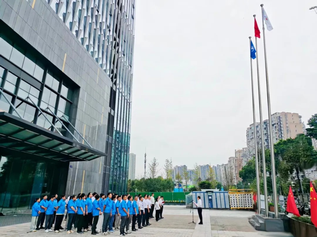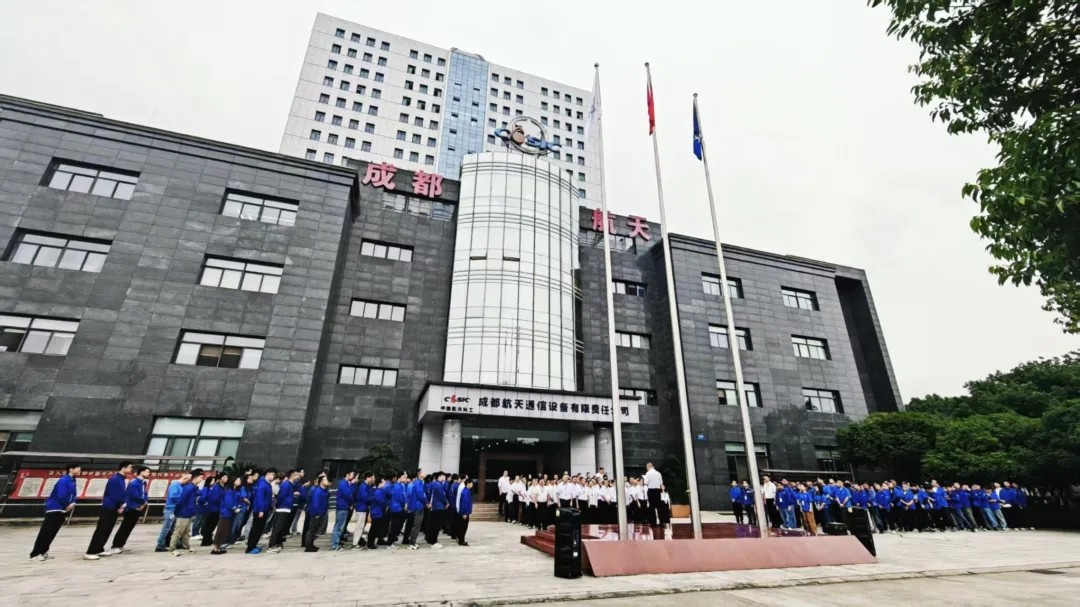 9月30日,航天通信所屬單位在杭州、成都、沈陽、長沙、綿陽、鎮江等地同步舉行升旗儀式。