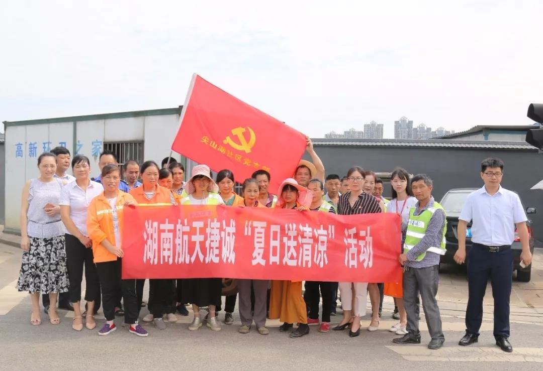 入伏以來,熱浪滾滾,而環衛工人們依然頂著酷暑奮戰在一線,為創造美麗的“星城”貢獻著自己的一份力量。為了給這群辛勤的勞動者們送上一份“清涼”,實現炎炎夏日里的“微心愿”,8月1日,江蘇捷誠湖南子公司黨支部聯合尖山湖社區黨支部,來到高新區尖山湖社區的環衛之家進行探望慰問。支部的黨員們為環衛工人們送上綠豆、藿香正氣水、板藍根等解暑物資,同時還帶去了米和油等生活必需品,提醒工人們在高溫天氣要做好防暑降溫措施,并對他們用辛勤汗水換來的干凈整潔的社區面貌表示由衷的感謝。